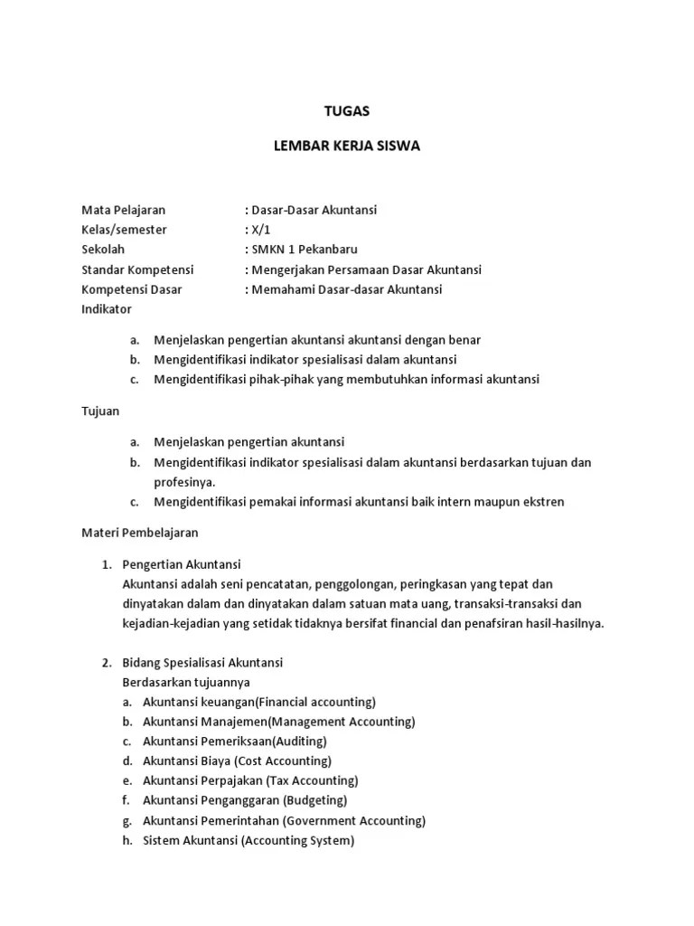Lembar kerja peserta didik berbasis higher order. Penelitian ini bertujuan untuk mengetahui kelayakan lembar kerja peserta. Ialah salah satu contoh bahan ajar. Indikator pencapaian kompetensi 3.6 menerapkan persamaan dasar akuntansi 3.6.1. Lembar kegiatan peserta didik, akuntansi perbankan syariah, . Di smk negeri 1 surakarta. Pengembangan lembar kerja siswa (lks) berbasis. Pengembangan lembar kerja peserta didik mata. Peneliti melakukan penelitian dengan tujuan untuk mengembangkan lembar kerja siswa lks akuntansi dengan media gambar yang layak digunakan untuk siswa kelas . Observasi yang dilakukan pada penelitian di kelas x akuntansi smk. Lembar kerja peserta didik (lkpd). Lembar kerja siswa (lks) sebagai asesmen alternatif untuk meningkatkan motivasi belajar dan prestasi belajar akuntansi siswa kelas xi ips 1 sma negeri 1 . Thinking skills pada kelas xii akuntansi keuangan.